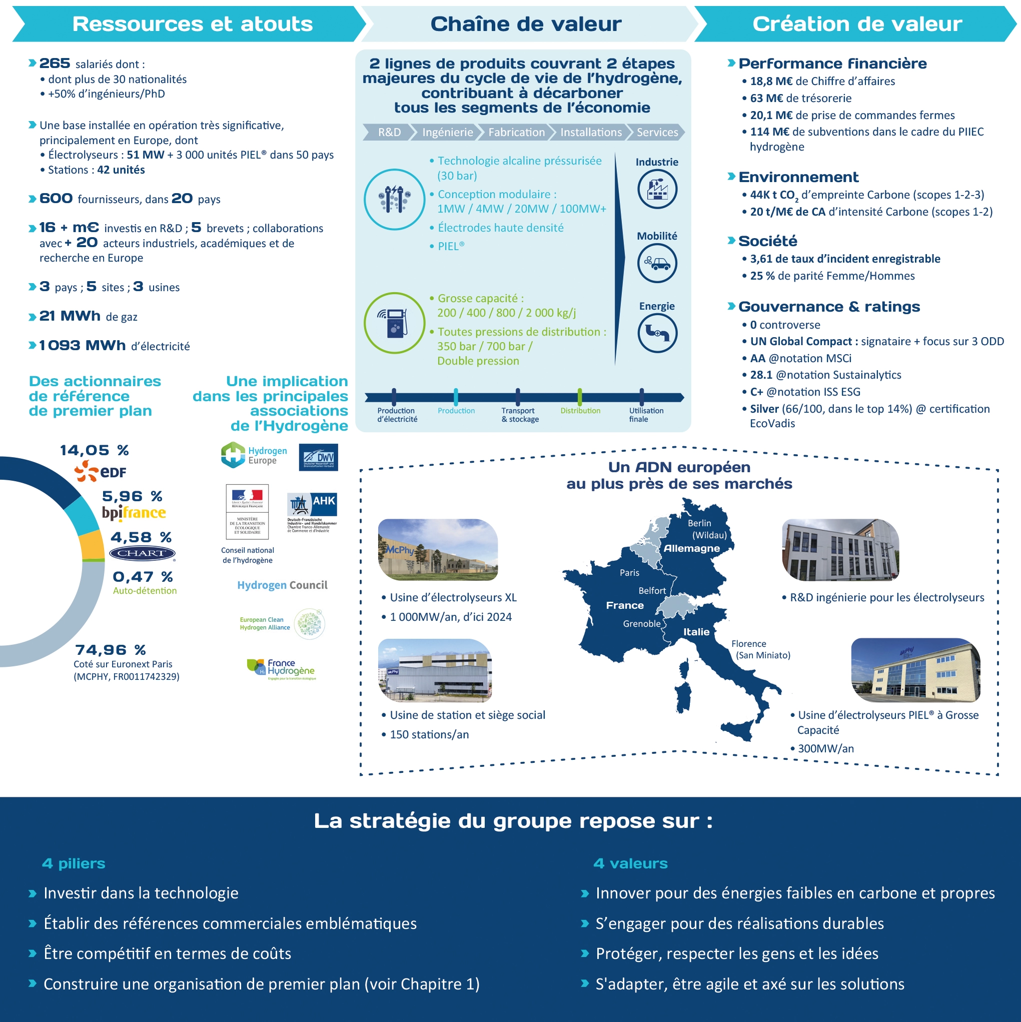 Compte-tenu de notre modèle d'entreprise œuvrant pour la décarbonisation, grâce à nos équipements de production d'hydrogène, le développement durable est le fondement même de McPhy et s'inscrit dans notre vision de "faire avancer l'énergie propre", sous la gouvernance de notre conseil d'administration et de notre comité de direction.